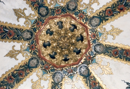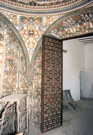 En la planta alta de la casa del siglo XVIII se sitúa un precioso oratorio abovedado, que está pintado al fresco en su totalidad con un programa iconográfico de signo mariano (querubines, guirnaldas flora­les, símbolos de la letanía, águilas, el Espíritu Santo, corona celestial y lirios de espinas), todo en rojo, azul y dorado, con ritmo rococó, que recuerdan las pinturas de la iglesia de San Jorge de Sanlúcar, templo que también fue favorecido por los mecenas de la Casa Arizón.