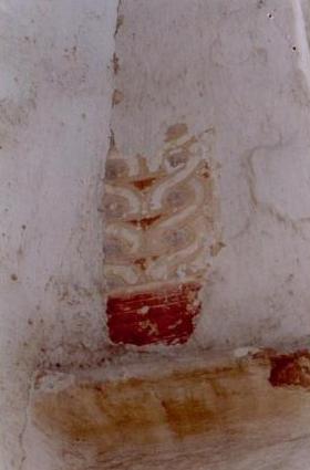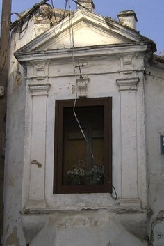 Pero esto no fue todo. Con la demolición del inmueble a la que se hallaba adosada, se pudo observar que esta Capilla del Cristo de las Aguas había sido antiguamente un elemento exento, que probablemente centraría una plazuelilla existente en este sitio con anterioridad a la construcción de las casas. Así, la misma configuración apilastrada con pinturas murales y frontón superior que presentaba en su zona delantera, apareció en su parte trasera.