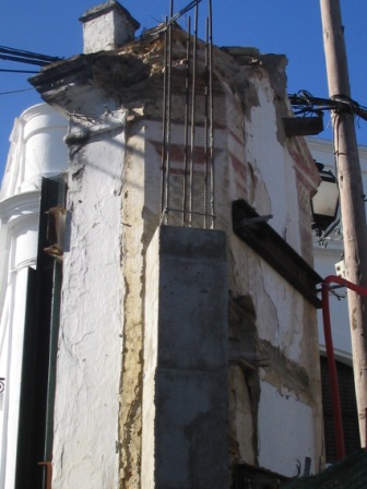 El resultado ha sido deplorable. Se ha destruido todo el frente de la Capilla que había estado oculto hasta ahora, quedando su parte superior a modo de monstruoso "adorno" en el interior de uno de los pisos.