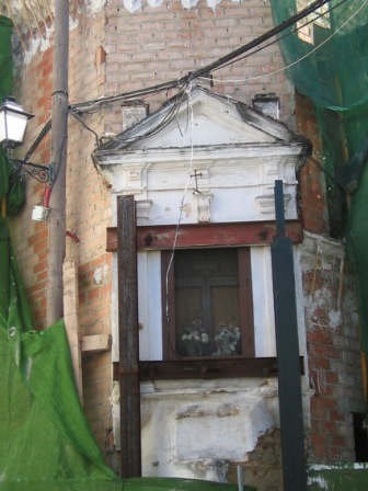 Cuando se iniciaron las obras, en 2005, dejaron la Capilla sin apoyo alguno, de forma que el Aula Gerión denunció, mediante comunicado de prensa, el peligro que corría de desplomarse, además de haber desaparecido la inscripción lapidaria que estaba en la base de este retablito urbano.