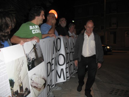 desplegaron una pancarta con el lema “No a la demolición