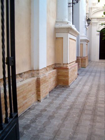 han consistido en la colocación de un zócalo de ladrillo visto en