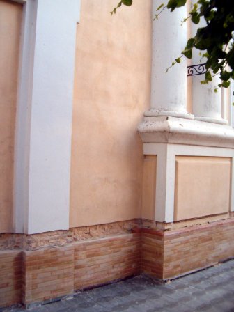 fachada, al adelantarse este zócalo unos centímetros respecto al