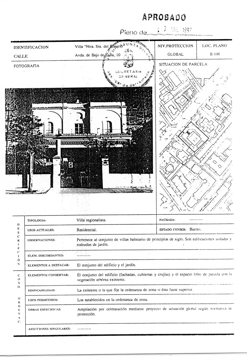 PGOU de Sanlúcar, en cuya ficha urbanística (B-108) se