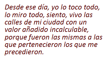 lo toco todo, lo miro todo, siento, vivo las calles de mi