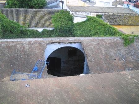 tanto en fachada, con el apuntalamiento de su cerca, como en