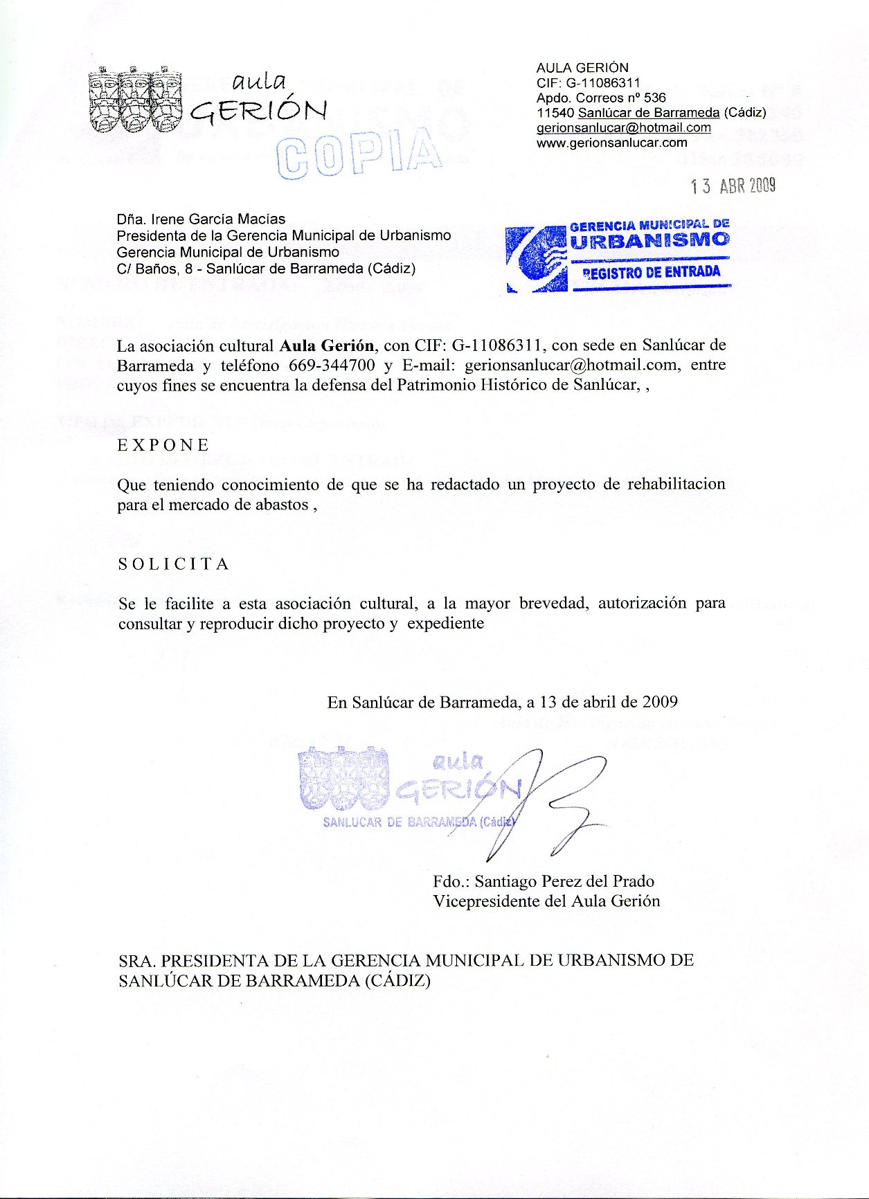 Aula Gerión solicita a la Gerencia de Urbanismo el Proyecto de